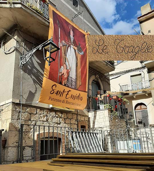 Il 5 agosto, festa del patrono Sant’Emidio, si svolgono Le Traglie, una sfilata di carri trascinati da buoi e altri animali ornati con grano ma che oggi vede sfilare i trattori ornati con fasci di grano che il popolo dona al Santo. Infatti