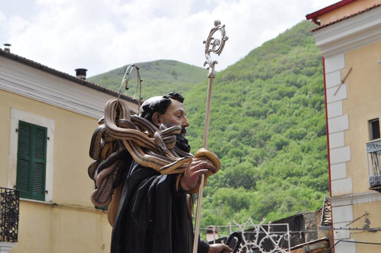 The pagan worship was replaced by the Christian and the goddess Angizia from San Domenico that ended his own life in Cocullo; during the procession through the narrow streets of the town’s statue of the saint is surrounded by dozens of snakes.