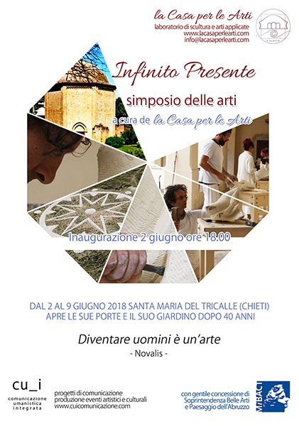 Da sabato 2 giugno a sabato 9 giugno 2018 a Chieti, nel periodo della festa di San Francesco Caracciolo in piazza del Tricalle, presso il tempietto ottagonale di Santa Maria del Tricalle, gioiello dell’architettura sacra medievale, si svolgerà un rassegna artistica e culturale dal titolo Infinito Presente. L’obiettivo della manifestazione è di restituire alla comunità una parte del suo patrimonio storico e artistico, dando la possibilità di visitare la chiesa, chiusa ormai da più di quaranta anni, sia a chi non vi è mai entrato che a chi si ne possiede un ricordo lontano nel tempo. La riapertura della Chiesa comprenderà anche la riqualificazione del giardino che ne circonda il perimetro.