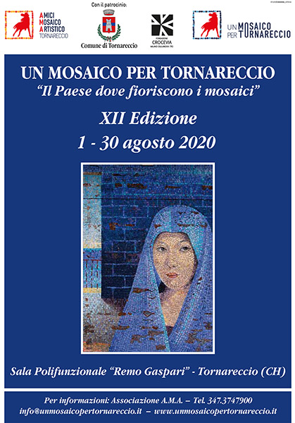 Giunto alla sua dodicesima edizione, l’evento è promosso dall’Associazione Amici Mosaico Artistico con il patrocinio del Comune di Tornareccio e il contributo della Bcc Sangro Teatina, e coordinato da Elsa Betti. Curatrice 2020 sarà Ida Mitrano: storica e critica d’arte, svolge la sua attività al Polo museale La Sapienza di Roma e collabora al Corso di Museologia e gestione dei beni culturali per il Corso di Laurea in Tecnologie per la Conservazione e il Restauro dei Beni Culturali presso la stessa Università. È sua la selezione dei sedici artisti partecipanti: Evita Andujar, Giovanni Arcangeli, Valeria Cademartori, Antonella Cappuccio, Antonella Catini, Solveig Cogliani, Giovambattista Cuocolo, Carlo Frisardi, Simonetta Gagliano, Matteo Montani, Giorgio Ortona, Lina Passalacqua, Nino Pollini, Pino Reggiani, Vincenzo Scolamiero, Andrea Volo.