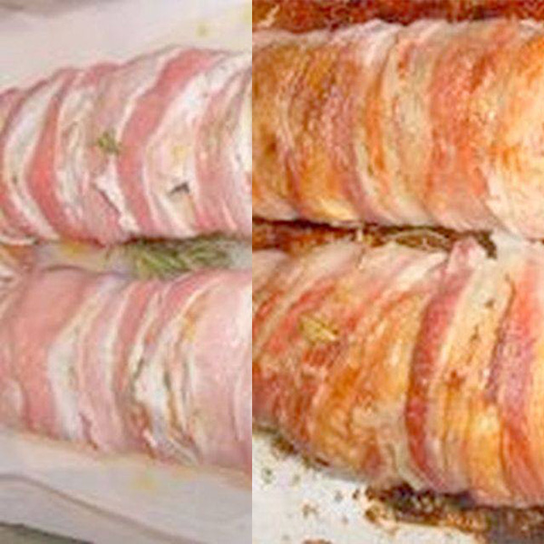Infornare a 200 gradi per 45/50 minuti. Si intuisce che il filetto è cotto quando la pancetta si è sciolta, ha un colore marrone ed è un tutt’uno con il pane.